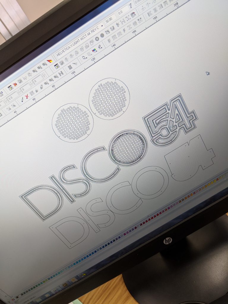 - UV printed onto acrylic, these ‘fans’ provide the finishing touches to Disco 54.