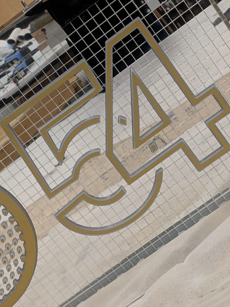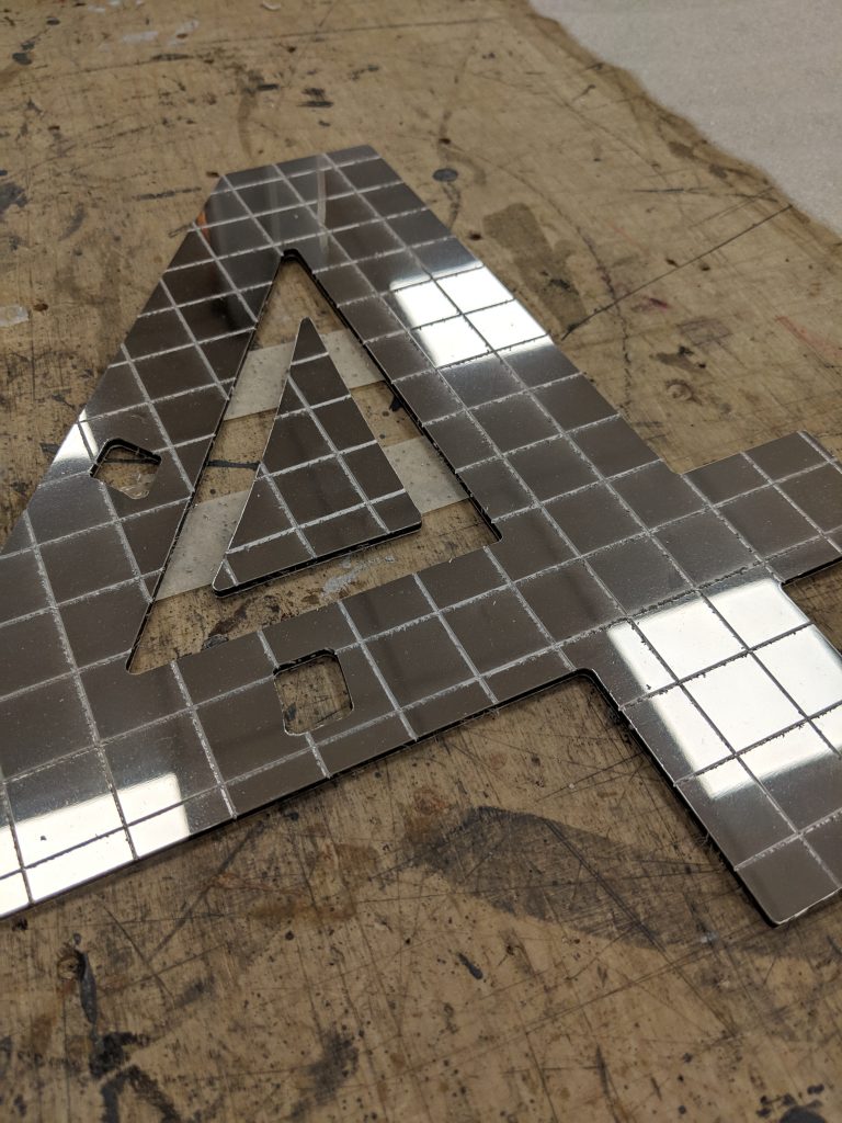 - Inlays for the 3D lettering in the same mosaic mirror finish.